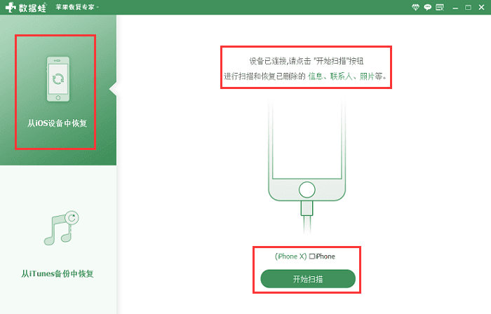 1、打开数据软件,用自己的USB数据线插入与电脑连接的插口后点击“开始扫描”;