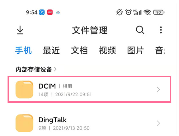 1、首先打开手机上的文件管理,然后点击DCIM文件夹。