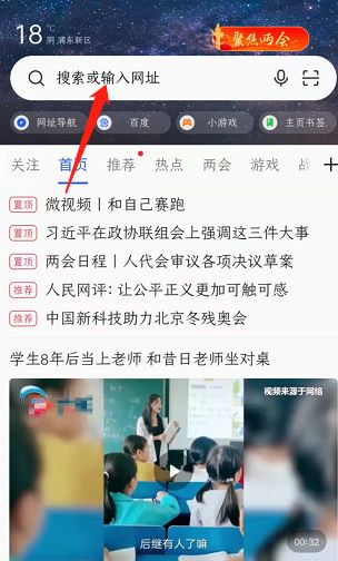 1、在手机桌面点击并进入浏览器,在浏览器顶部点击【搜索框】;