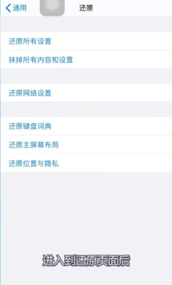 3、进入到还原界面后,在页面找到抹掉所有内容和设置并点击就可以刷机成功啦。