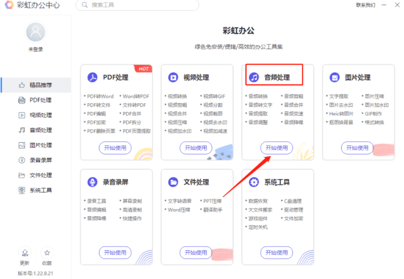 首先给大家带来的这款软件的名字是(彩虹办公)。 用户下载软件后,打开软件首页,可以在这里找到软件的音频处理功能。 音频处理功能下有一个音频转文本功能。 Open it 使用此功能,用户可以将文件放入或拖入。在这里,用户还可以设置输出配置。 软件支持批量操作和各种设置。 在我们开始转换之前,我们必须把这些东西设置好,否则我们的文件是不能正常转换的。 当我们调整所有的东西时,用户就可以开始转换了。 在这里,用户可以一次转换多个文件,可以大大节省我们的时间。 感兴趣的用户快来下载体验吧。
