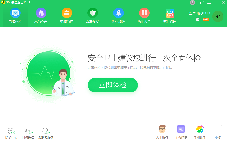 1、360安全卫士。我们可以在360安全卫士中针对需要检查的设备做木马查杀、插件清理、垃圾清理、漏洞修复、电脑体检等。可以更好的保护我们的电脑。