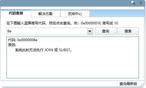 1、蓝屏代码0x0000008e的含义为“系统此刻无法执行 JOIN 或 SUBST”。而造成开机蓝屏,错误代码0x0000008e的这个故障的原因正是微软6月11日发布的KB2839229这个补丁造成的,包括xp、win7、均有此现象,win8现在还没做验证。