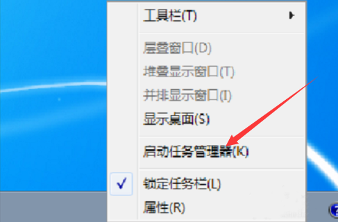 1、在桌面上可以找到“任务栏”时右键点击“任务栏”,打开“任务管理器”。
