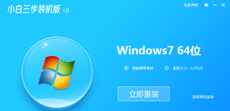 1.打开桌面载的小白三步装机版软件,进入主页后,点击立即重装按钮。