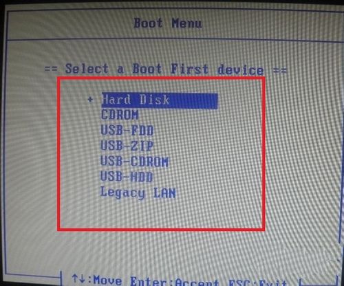 进入后,是不是有1、2、3.....等等的选项 在1那行显示的就是最先启动的设备,2那行当然是第一启动的设备不存在时就会启动第二行的设备了!