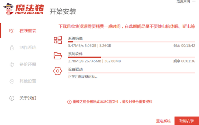 2、接着等待软件开始自动下载win7系统文件和驱动等。