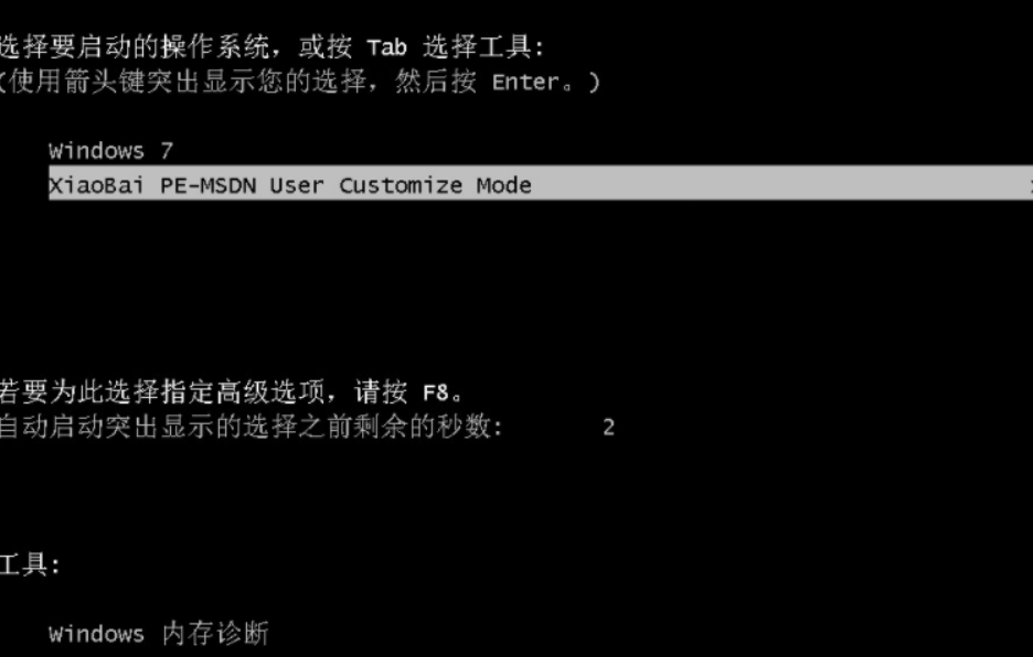 5、在启动界面选择第二项XiaoBai PE-MSDN进入PE系统安装。