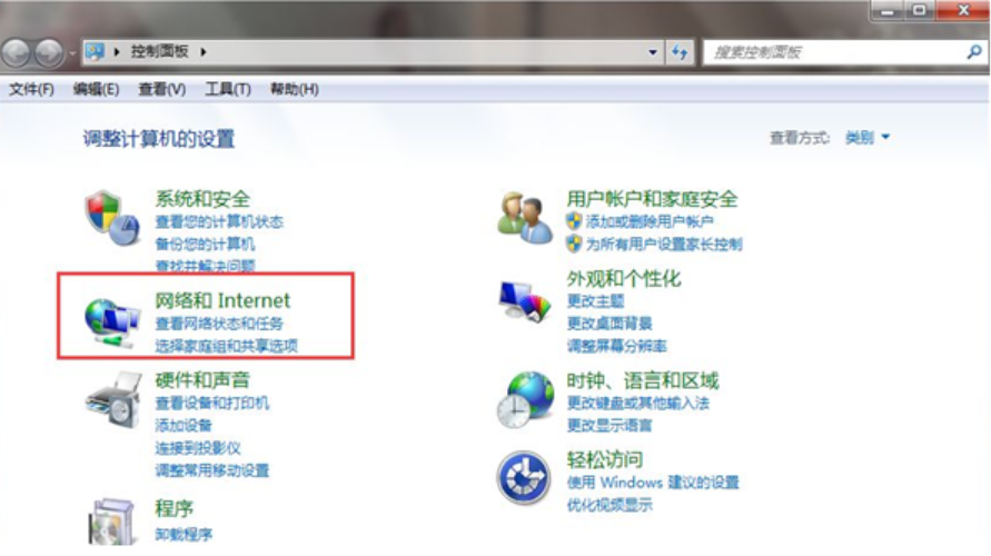 1、打开win7电脑的控制面板,点击进入【网络和internet】选项。