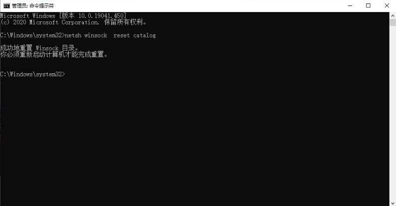 3、在该页面输入命令netsh winsock reset catalog 直接回车确定,然后就会收到提示"您必须重新启动计算机才能完成重置操作,此时只要重启计算机就可以了。