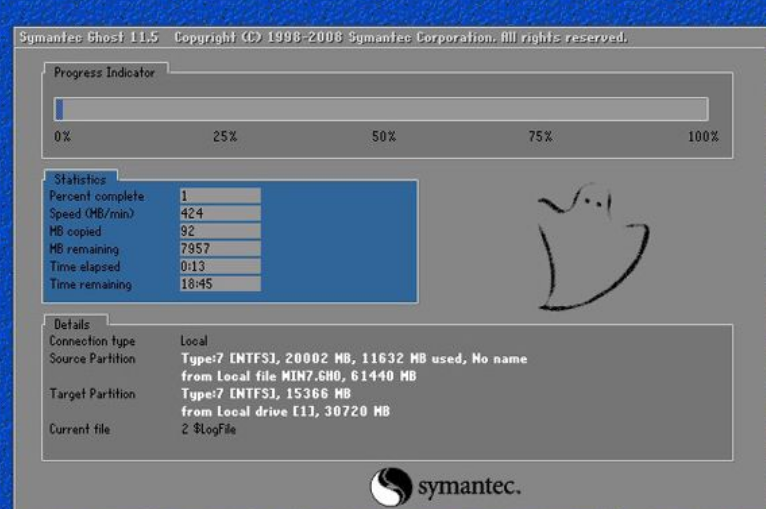 5、重启电脑后,进入到这个界面,执行C盘格式化以及系统还原到C盘过程。