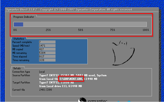 6、还原完成之后,耐心等待,系统自动进入全自动安装。