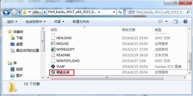 3、打开该文件夹里面的“硬盘安装”程序,点击即可安装。