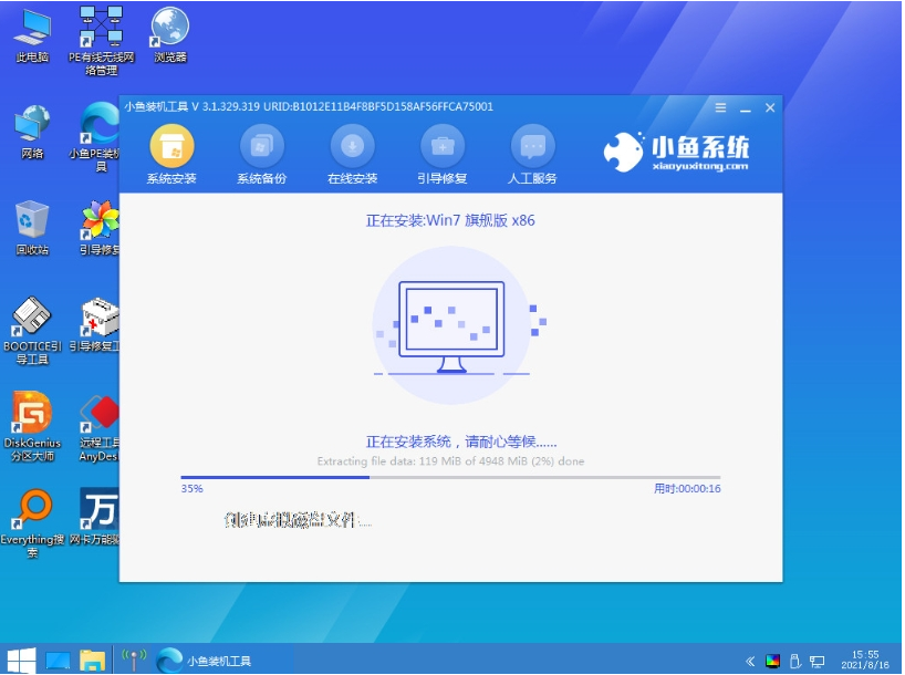 4、在pe系统内,软件会自动安装win7系统。