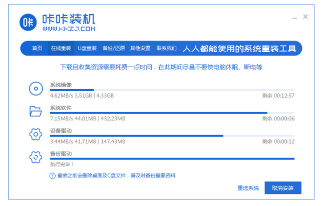 3、等待软件会自动开始下载win7系统和驱动文件等。