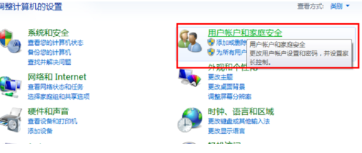 2、再找到用户账号和家庭安全进入。