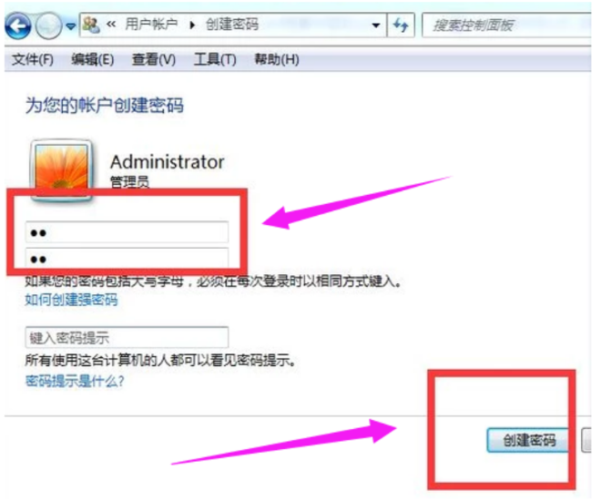 步骤五:在新出现的窗口中输入密码,单击创建密码。