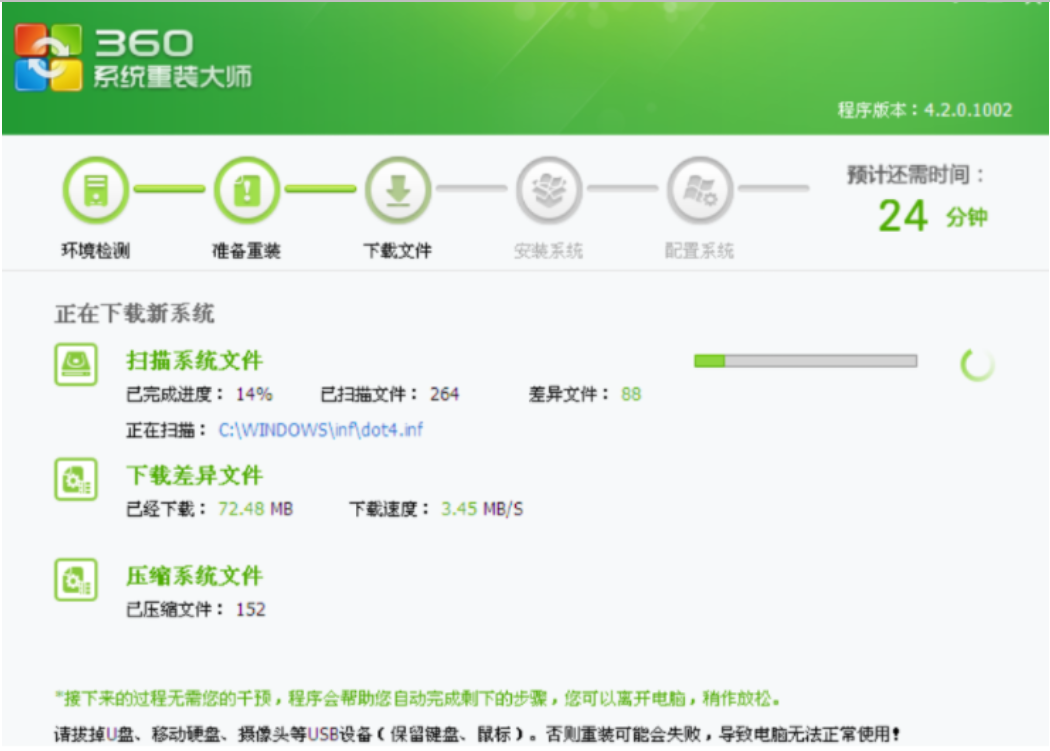 做好电脑C盘备份,等待360系统重装大师工具将系统环境下载完成之后,重启即可。