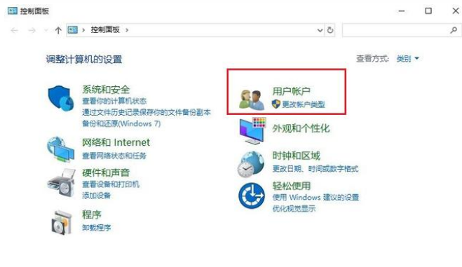 2、在控制面板的页面,我们选择查看方式为“类别”,点击“更改账户类型”。