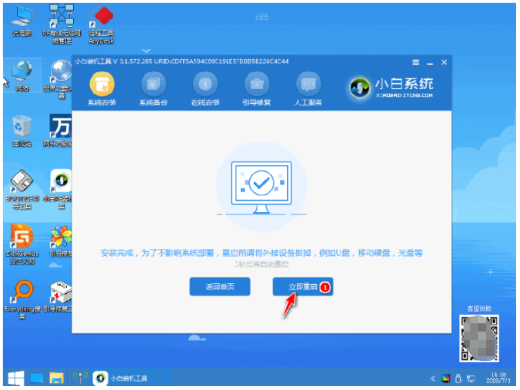 6、安装完成后会提示安装成功,我们选择立即重启。