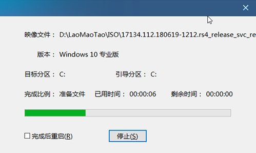 4、还原后重启电脑进行部署,直至进入新系统桌面。