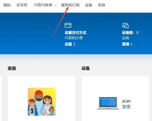3、进入网站后,点击服务和订阅。