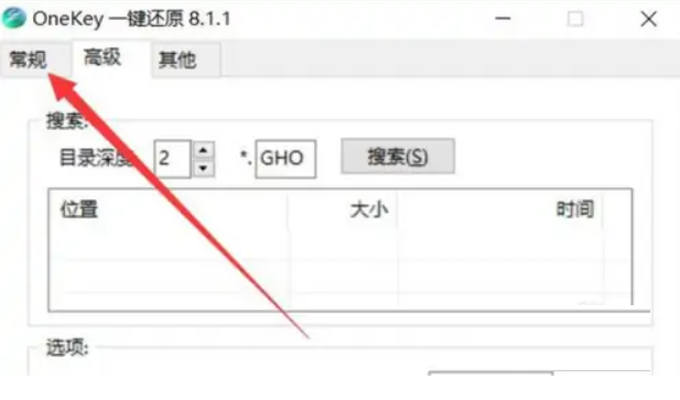 1、在“OneKey一键还原”软件面板中,单击【常规】打开。