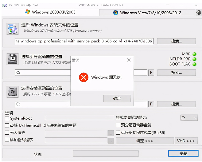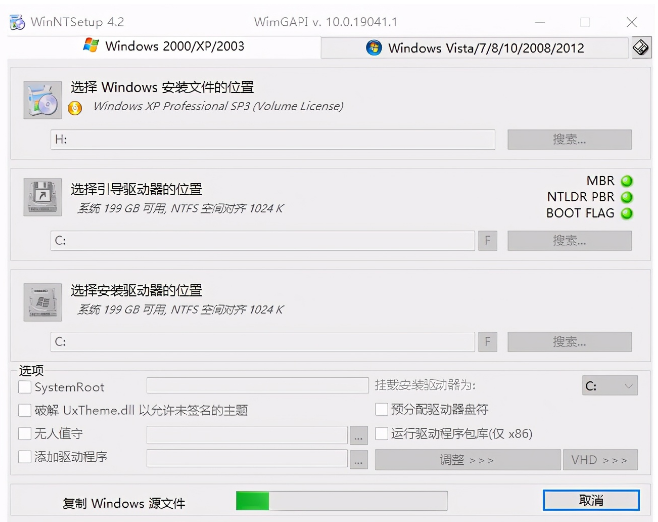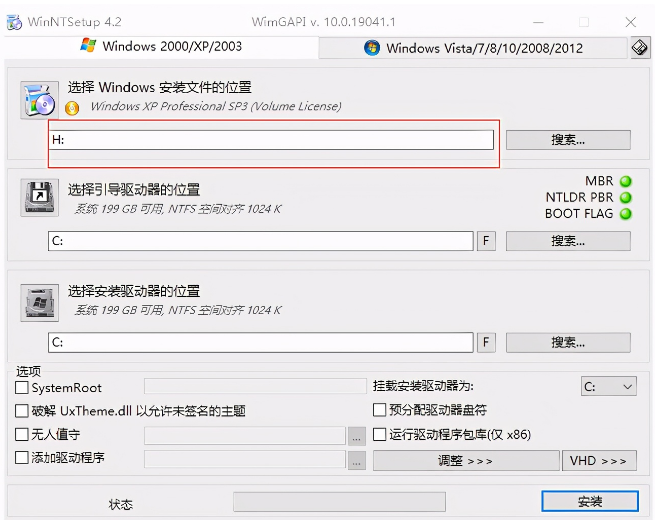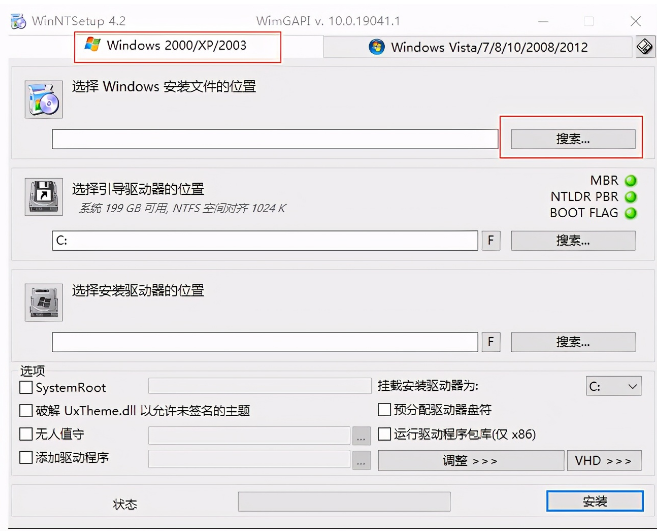 5、再次打开WinNTSetup,选择Windows 2000/xp/2003,点击选择搜索。
