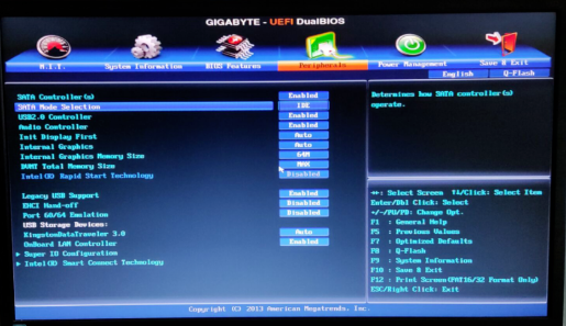 11、重新启动系统后,还在在BIOS里面需要确定一下SATA Mode 需要使用的是IDE模式。