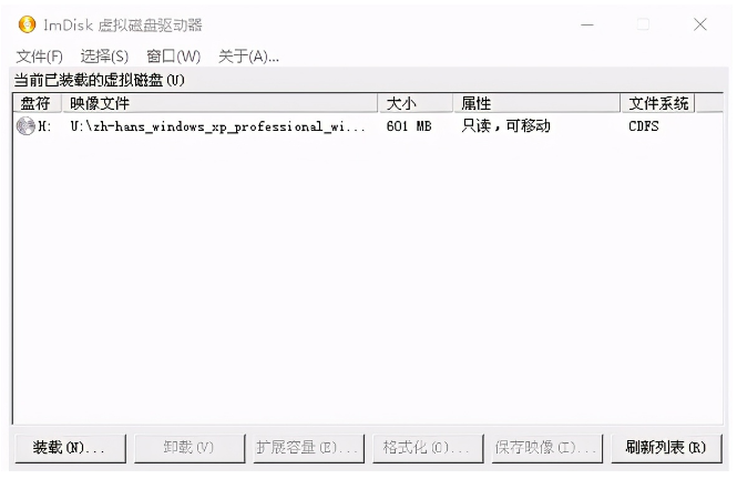 3、找到PE系统中的ImDisk虚拟光驱,将xp iso文件装载至虚拟光驱之中。