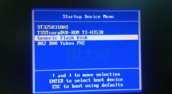 5、把制作好的启动U盘插到电脑上,开机快速按Esc 或Del 或F12等进入到Bios设置U盘启动。这里是按F12进入的快速引导菜单,选择U盘进入。