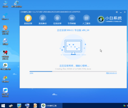 8、在pe环境中,小白软件将自动执行windows11的安装。耐心等待完成即可。