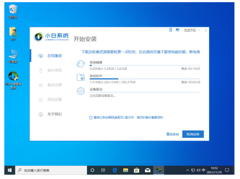 4、win11下载完成后,小白软件进入环境部署状态。