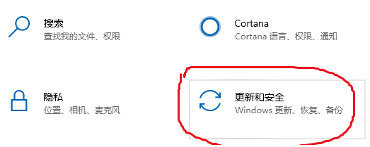 2、选择“更新和安全”。