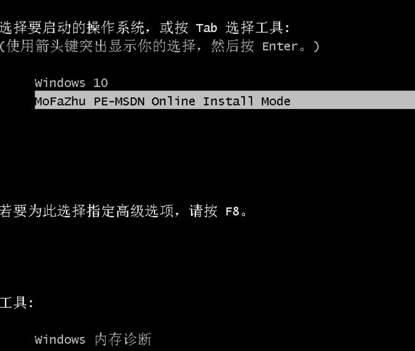 4、选择mofazhu pe-msdn项进入pe系统内。
